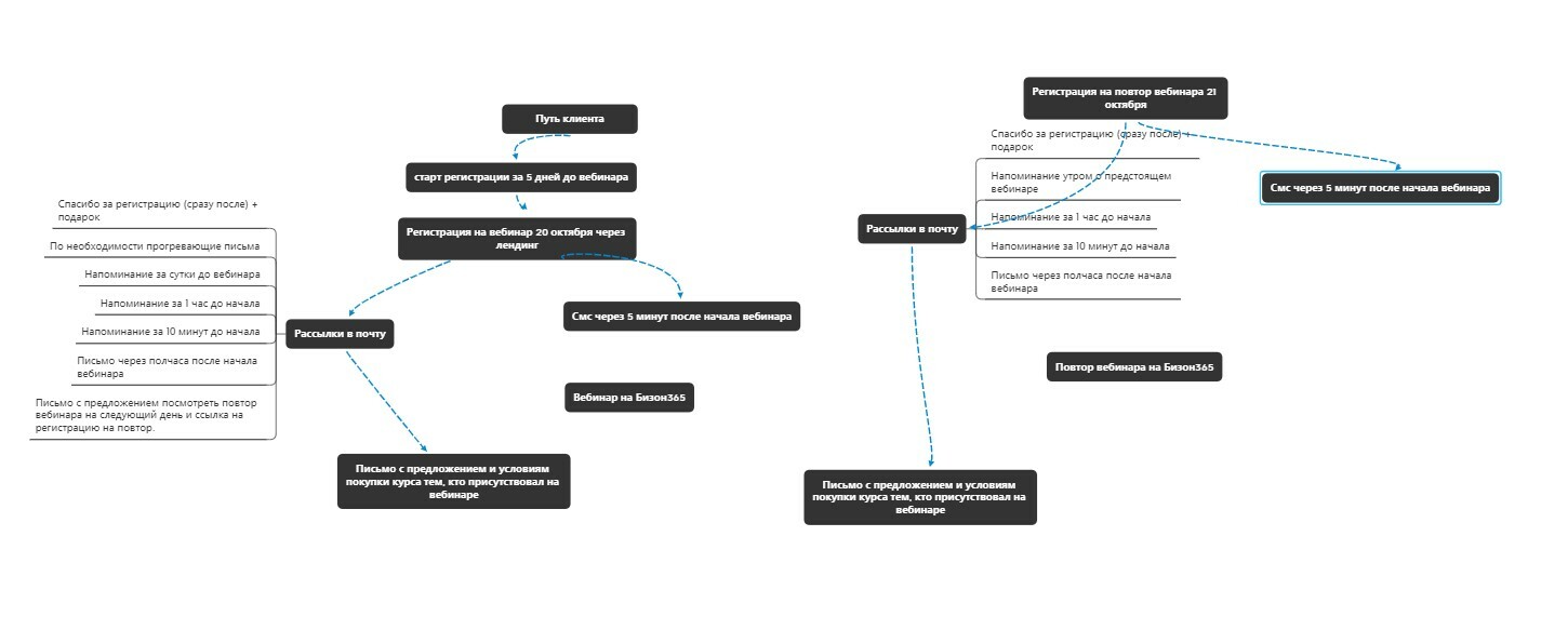 - после вебинара отправляется письмо с предложением посмотреть повтор на следующий день, с ссылкой на регистрацию на повтор.